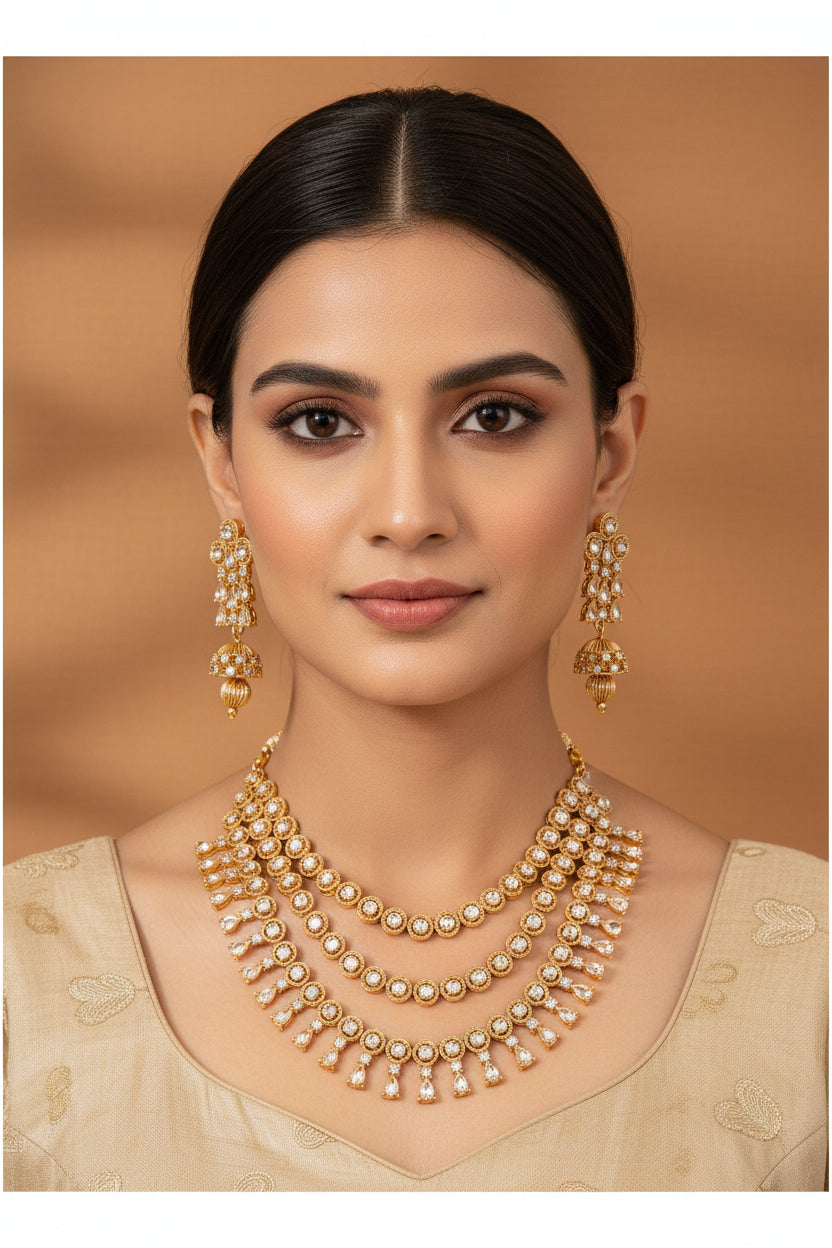 Paired with matching drop earrings, this set is perfect for weddings, festive occasions, and traditional celebrations.