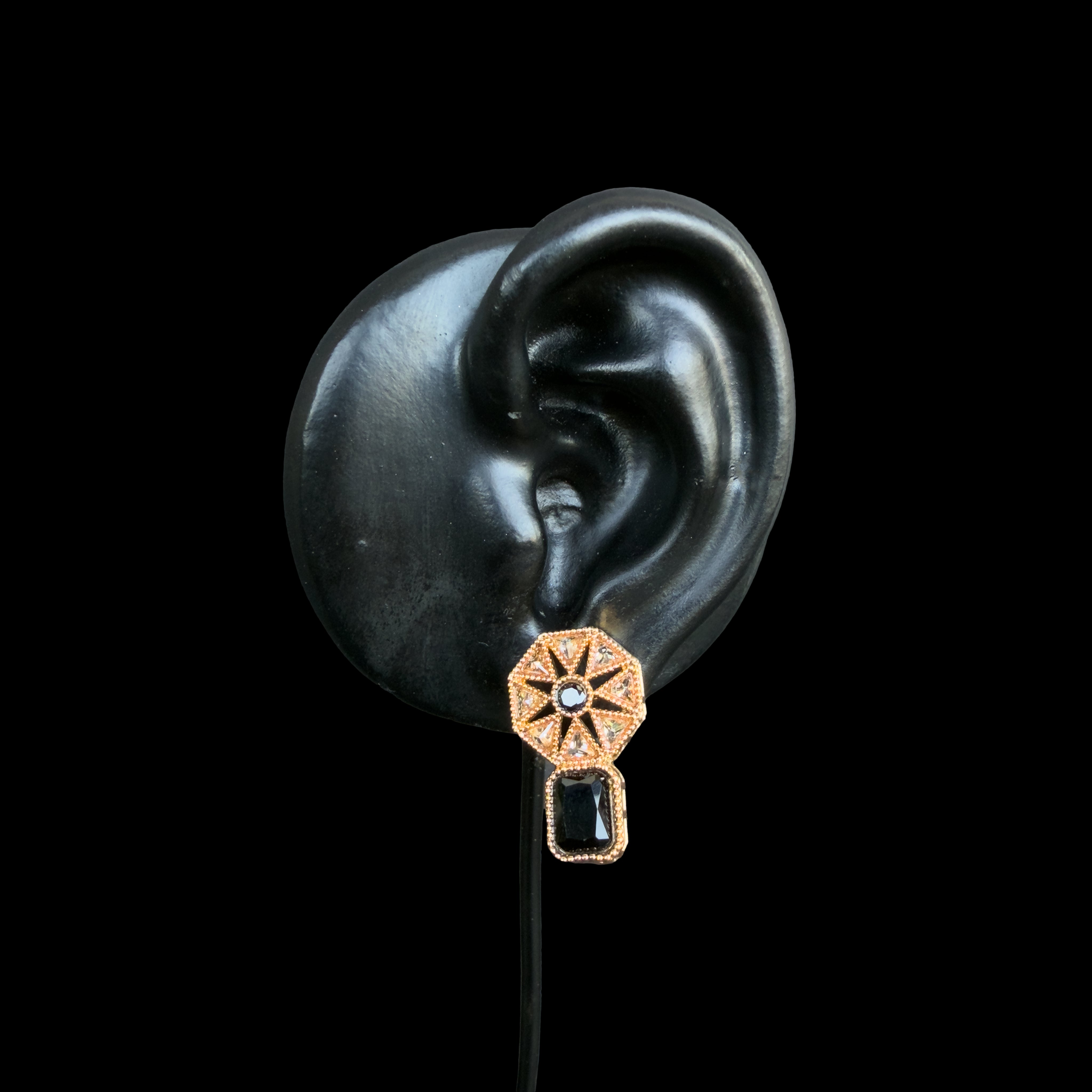 ✔ Bold Black Gemstone Drop – A perfect contrast for a high-fashion look.