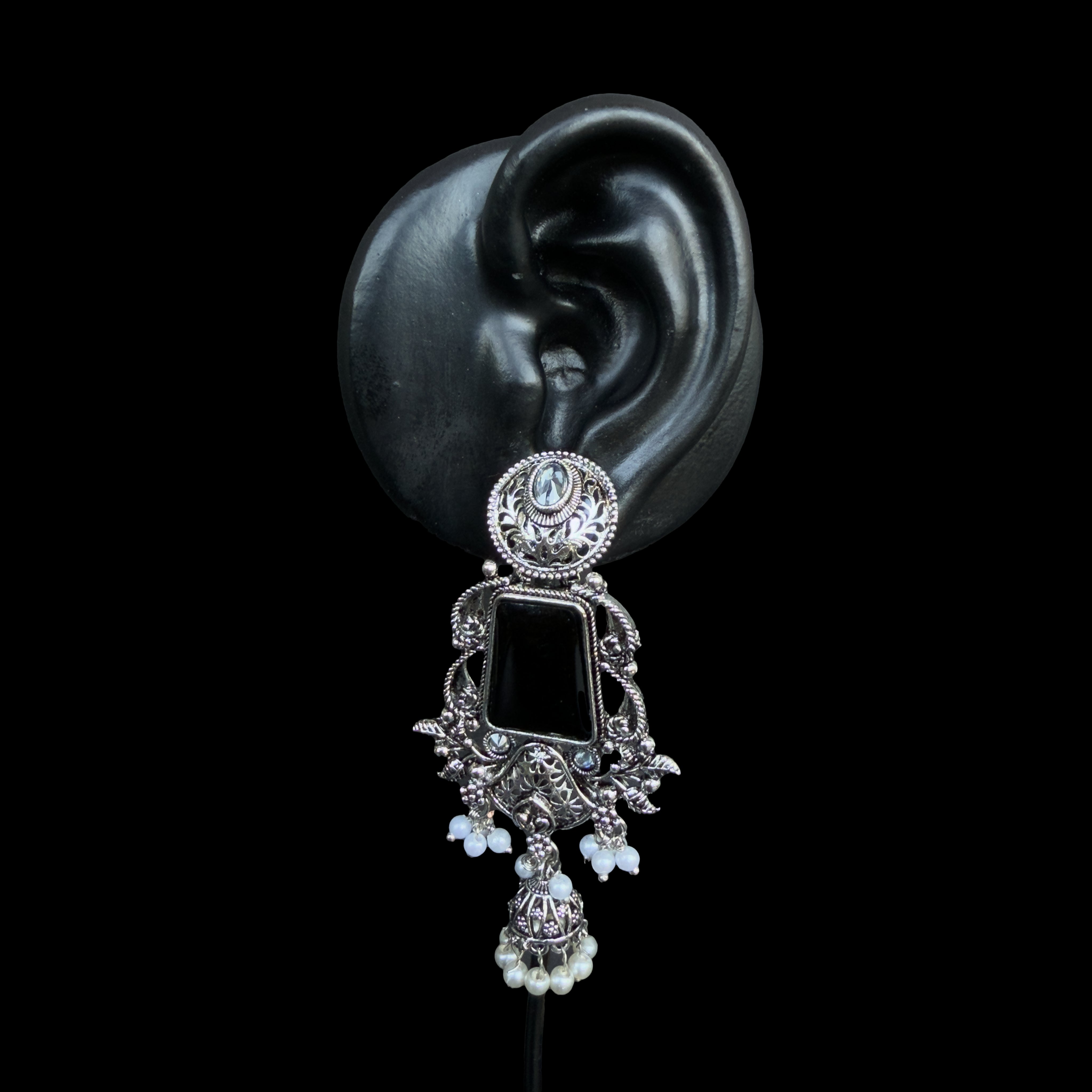 Black Heritage Temple Earrings with Jhumka & Pearl Detailing