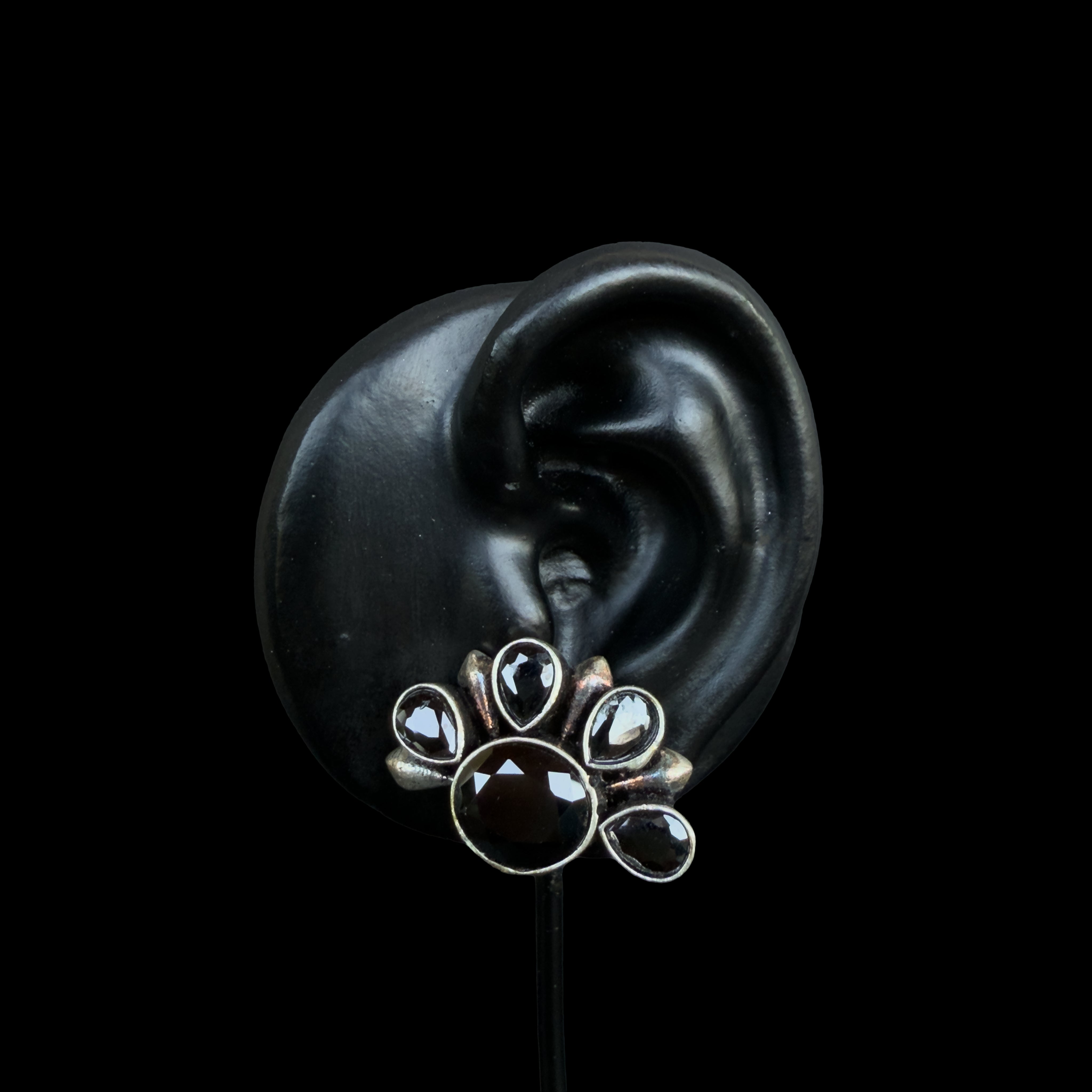 Make a statement with these Black Onyx Oxidized Stud Earrings, a perfect blend of boho charm and contemporary elegance. Designed with a bold faceted black onyx centerpiece, surrounded by teardrop-shaped stones in a rustic oxidized silver setting, these studs add depth and mystery to any outfit. Whether you're dressing up for work, a night out, or a festive occasion, these earrings exude understated luxury.