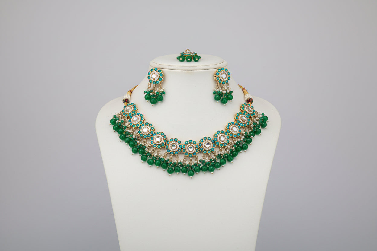 Royal Green Kundan & Pearl Necklace Set is crafted with precision to bring out the grandeur of Indian heritage jewellery.